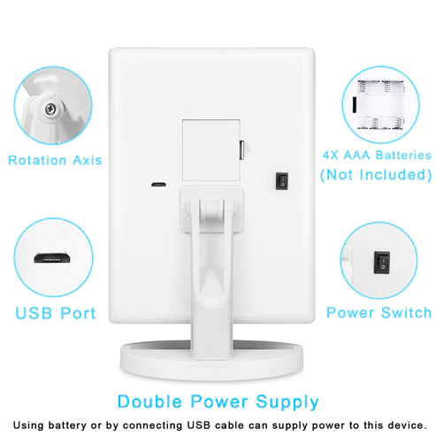🔮 360° Rotation: Get the perfect angle every time! Our LED Mirror boasts a full 360-degree rotation, allowing you to effortlessly find the best perspective for your makeup application, hairstyling, or skincare routine.